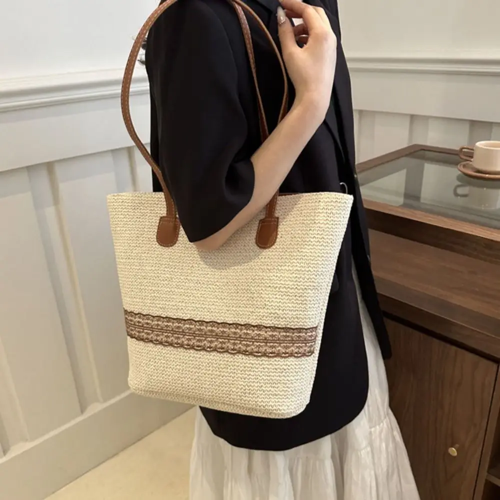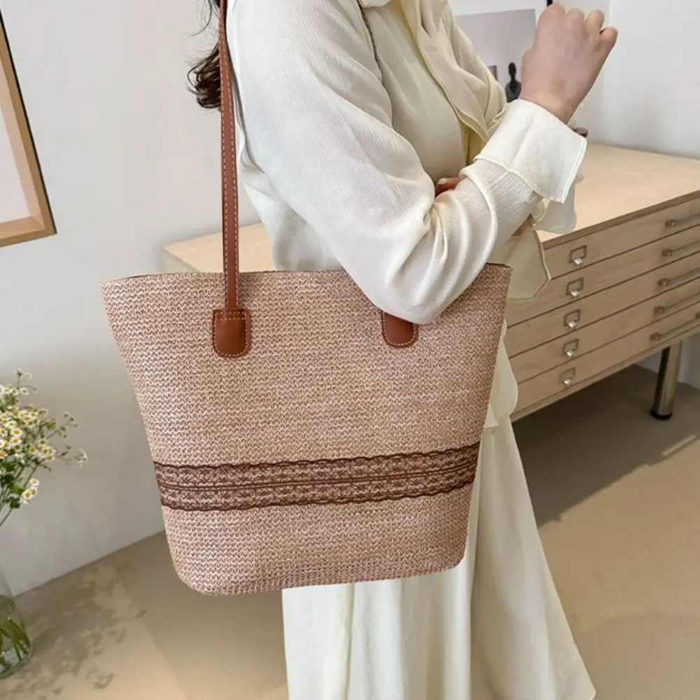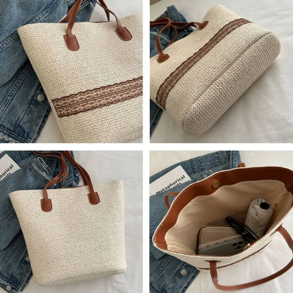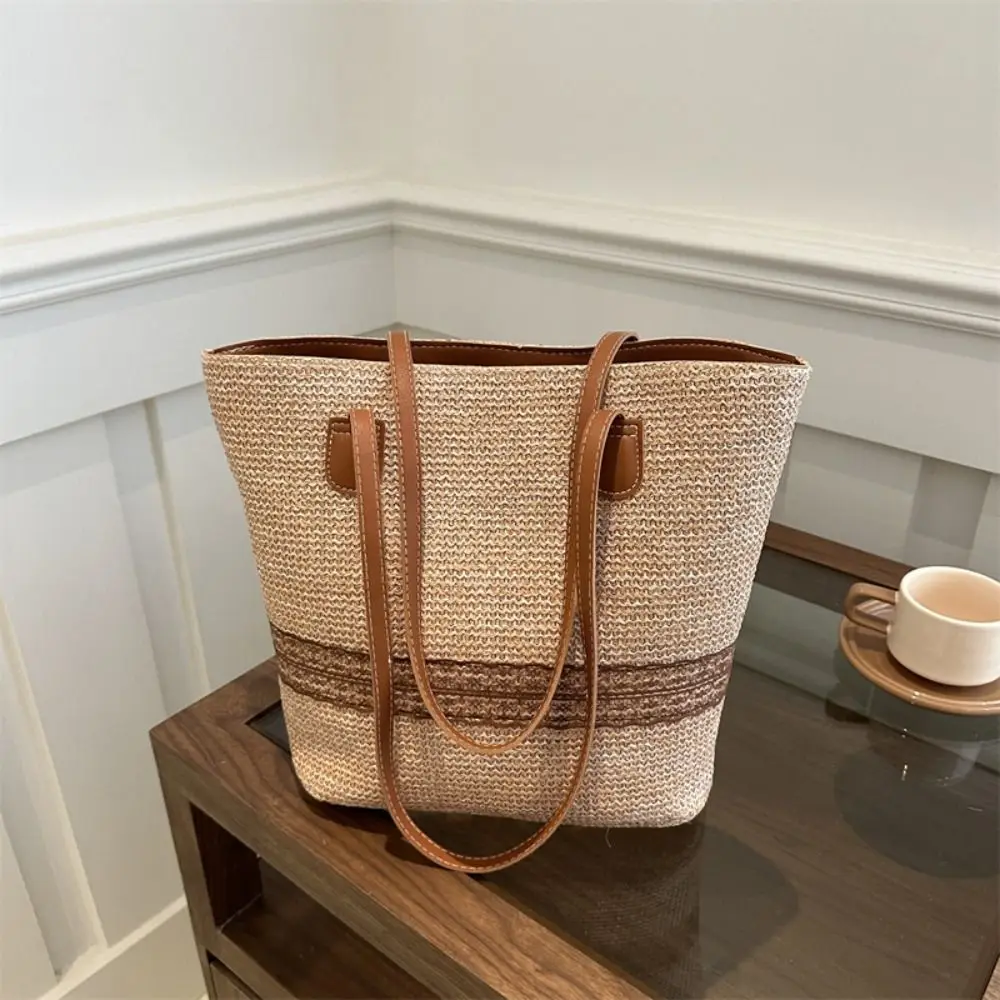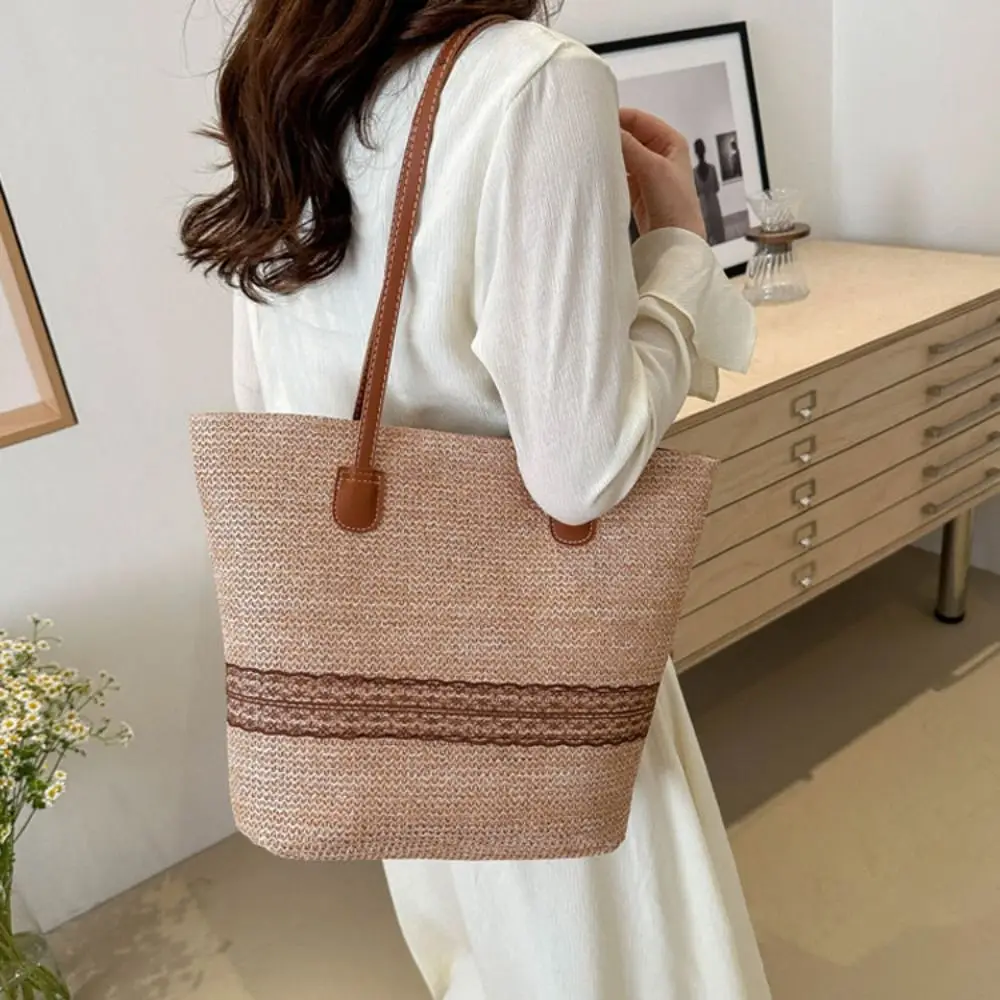 Women's Straw Tote Bag - Versatile shoulder bag in boho style for beach & everyday use