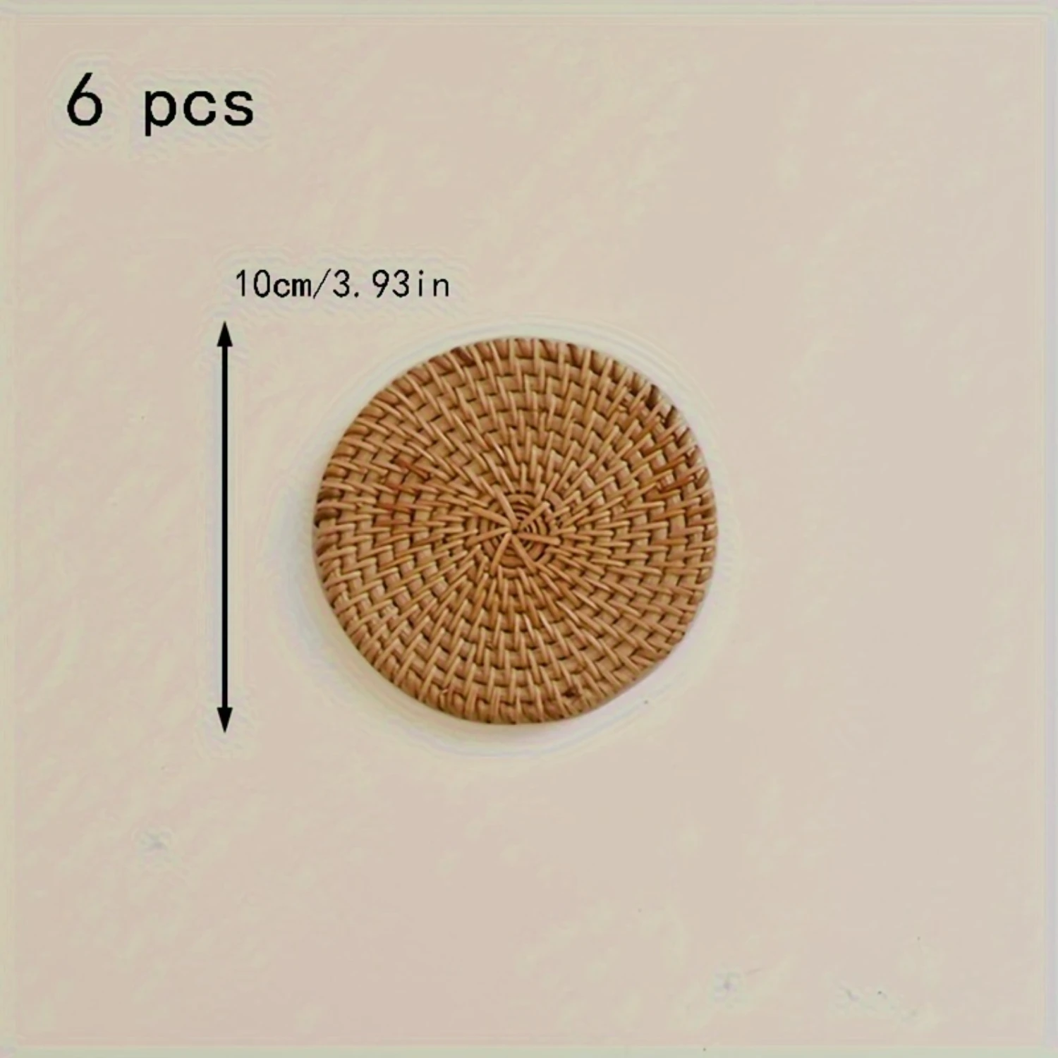 Set of 6 Natural Rattan Coasters with Holder - Braided Cup Mats for Dining Table & Living Room Decor, Eco-Friendly Kitchen Accessories