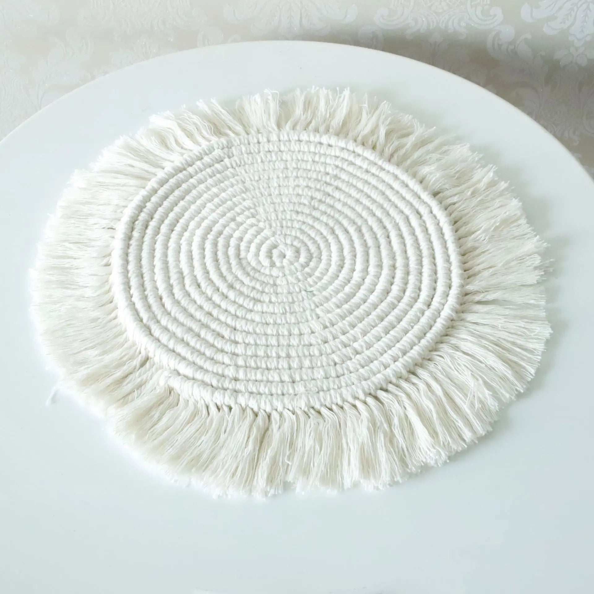 37 cm Baumwollgeflecht Untersetzer im Boho-Stil – Handgefertigte Makramee Tassenmatte, Rutschfeste Platzmatte für den Tisch