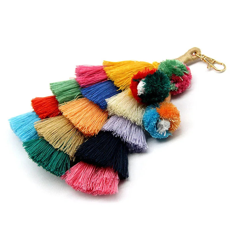 Bohemian Stil Quasten & Plüsch Ball Schlüsselanhänger – Dekorativer Rucksack Anhänger für Damen
