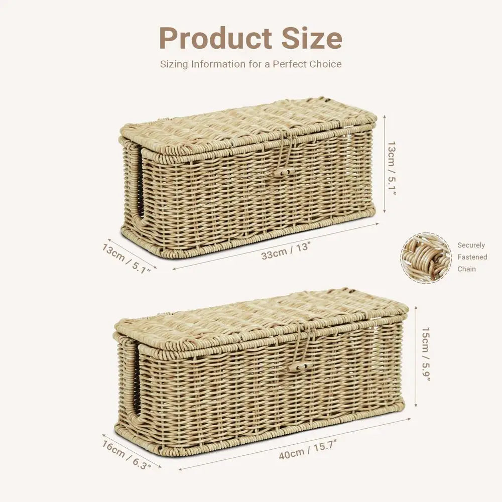 - Stabiler und langlebiger Aufbau: Dank der Eisenstärkungsdrähte im handgewebten Rattan bleibt die Box formstabil und behält ihre Farbe, auch bei längerer Nutzung.
