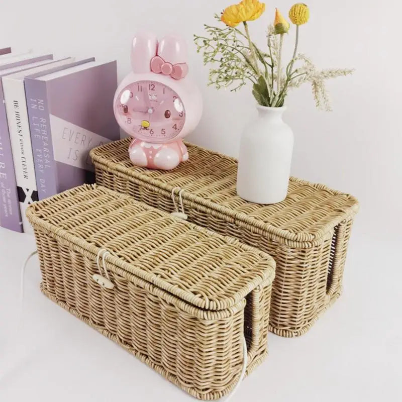 Verabschieden Sie sich von Kabelchaos und halten Sie Ihr Zuhause sauber und organisiert mit unserer handgefertigten Kabel-Management-Box. Diese vielseitige Aufbewahrungslösung aus hochwertigem, imitativen Rattan bietet Ihnen eine elegante Möglichkeit, Kabel und Ladegeräte ordentlich und sicher zu verstauen.