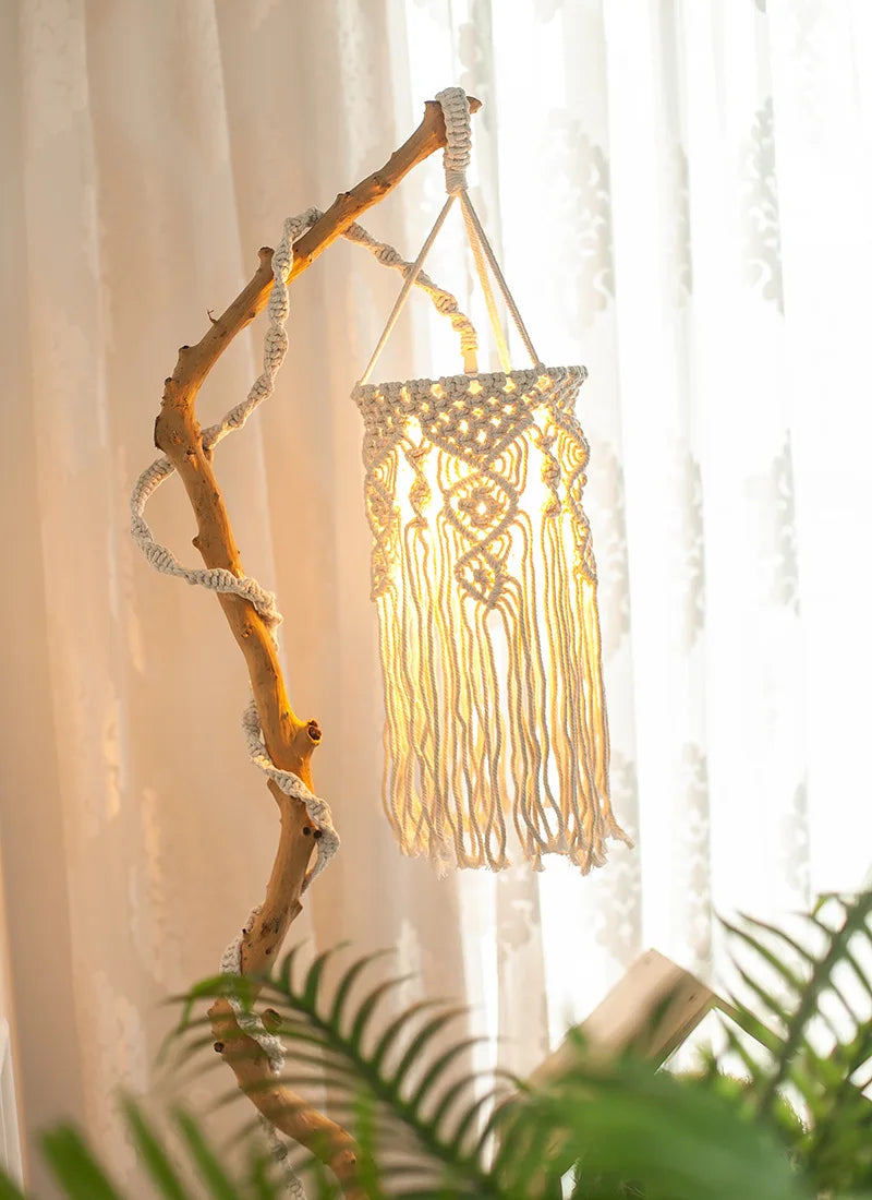 - Bohemian Design: Der handgewebte Macrame-Lampenschirm bringt das entspannte, kreative Boho-Flair in Ihr Zuhause. Die dekorativen Quasten verleihen dem Licht eine weiche, verträumte Ausstrahlung.