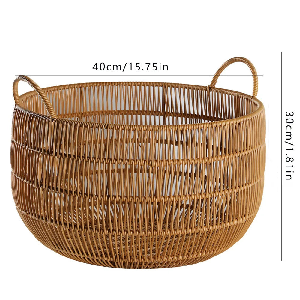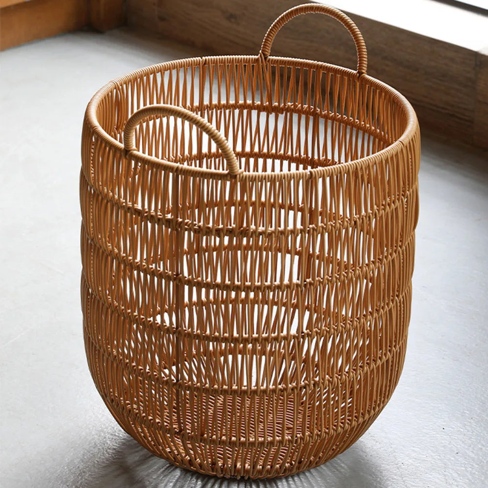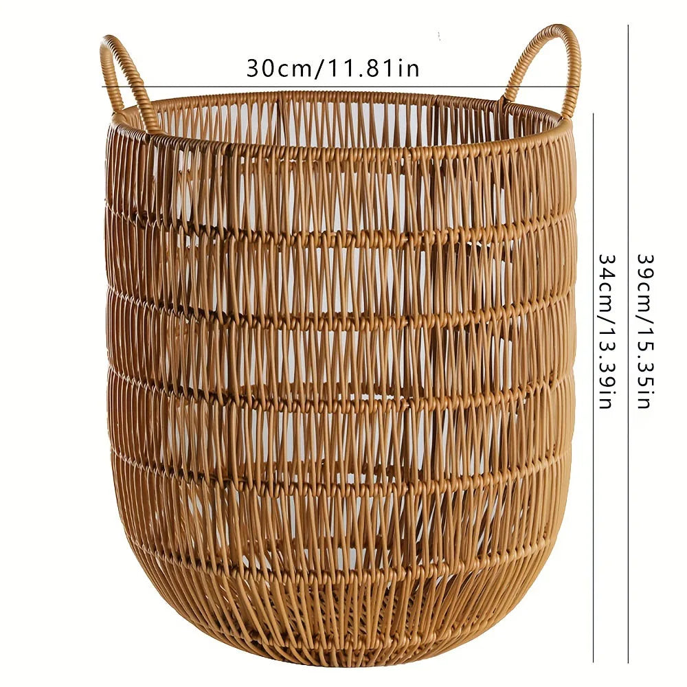 Handgefertigter PP Rattan Wäschekorb Groß - Wasserfest mit Griffen für Kleidung, Spielzeug und Badezimmer-Aufbewahrung