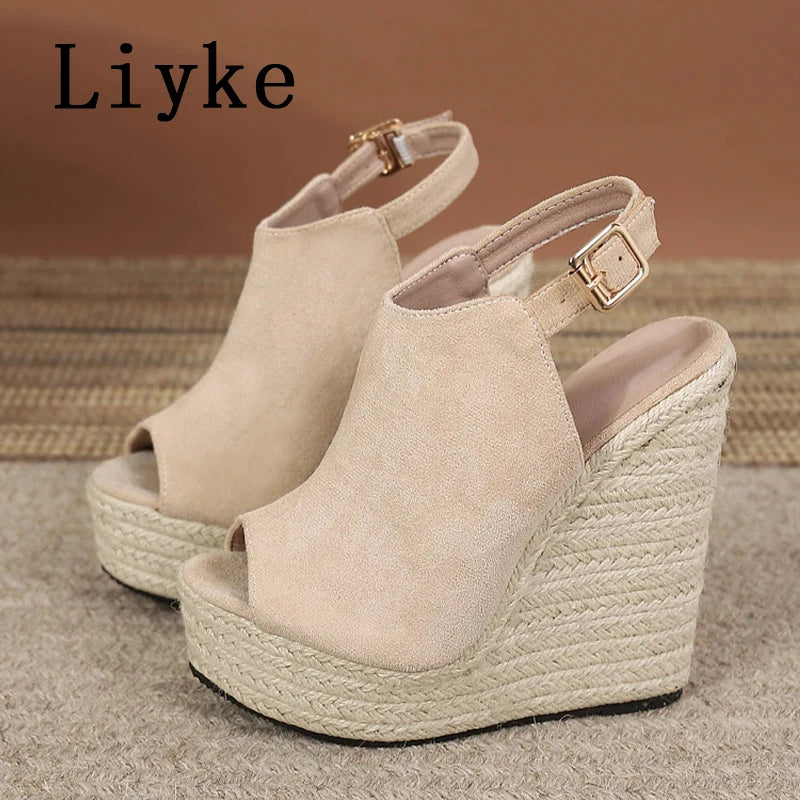 Liyke Sommer Peep-Toe Wedge-Sandalen für Damen – Modische Plattform High Heels mit Schnallenriemen