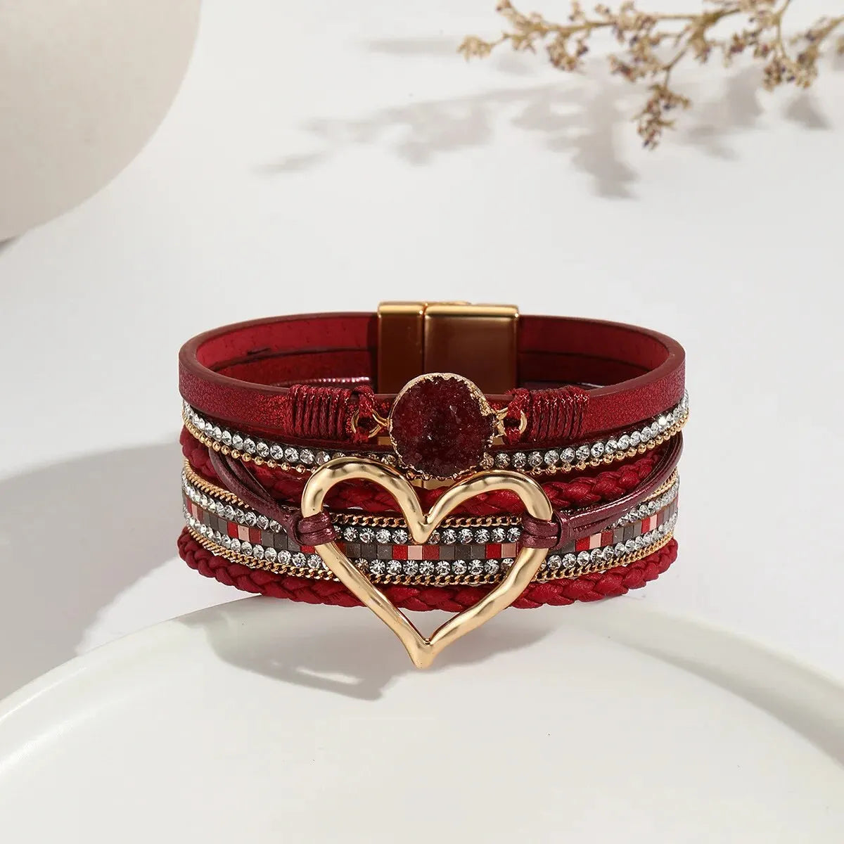 Boho-Lederarmband mit Herz-Charm – Fashion Armband für Damen mit Strass und Resin für Paare