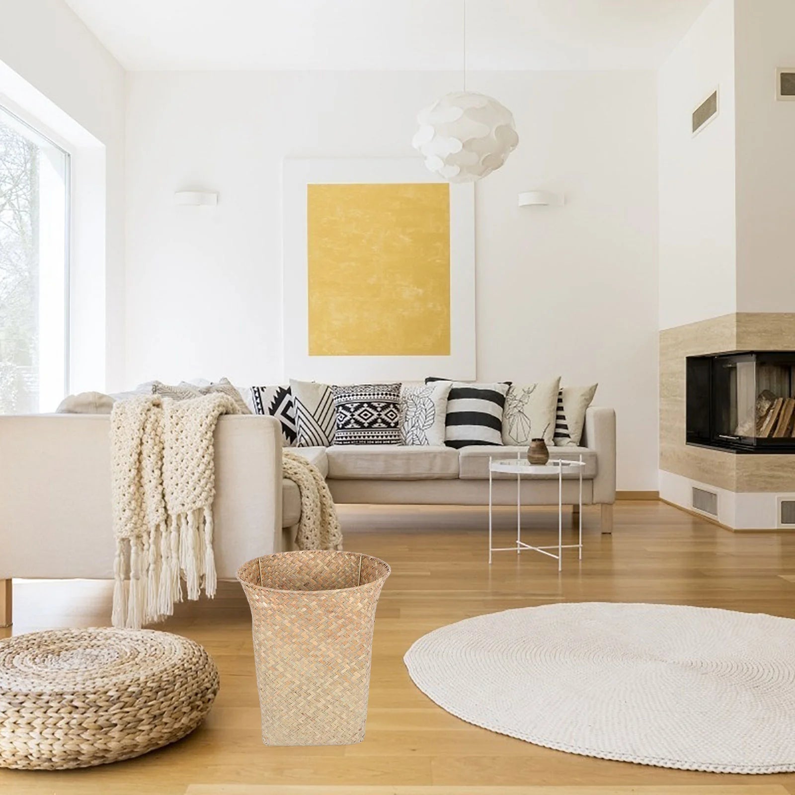 Handgewebter Rattan Abfalleimer – Vielseitiger Wäschekorb mit Deckel für Badezimmer, Küche, Wohnzimmer und Büro