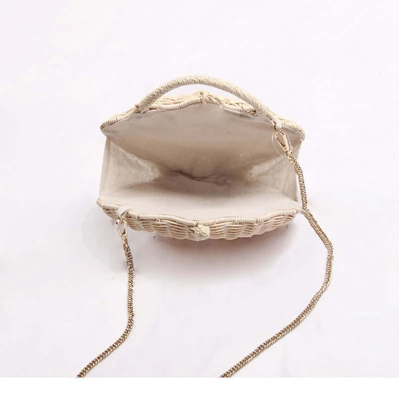 Muschel-förmige Rattan Woven Umhängetasche – Kleine Strohtasche für Strandurlaub und Freizeit