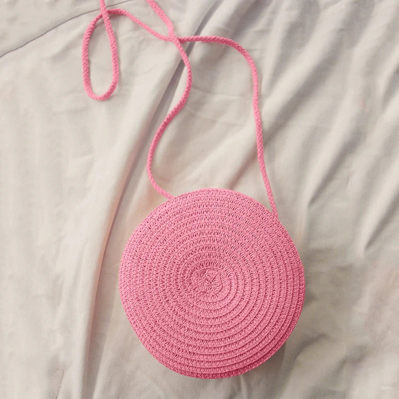 Sommer Woven Straw Crossbody Tasche für Frauen – Handgefertigte Runde Rattan Strandtasche, Kleine Schultertasche für Reisen